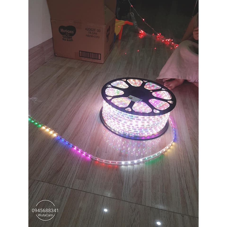 Led dây chống thấm nháy đuổi đủ màu, sử dụng trang trí phổ biến ngoài trời, quấn cây, quán ăn, sân vườn, v..v tùy theo nhu cầu.