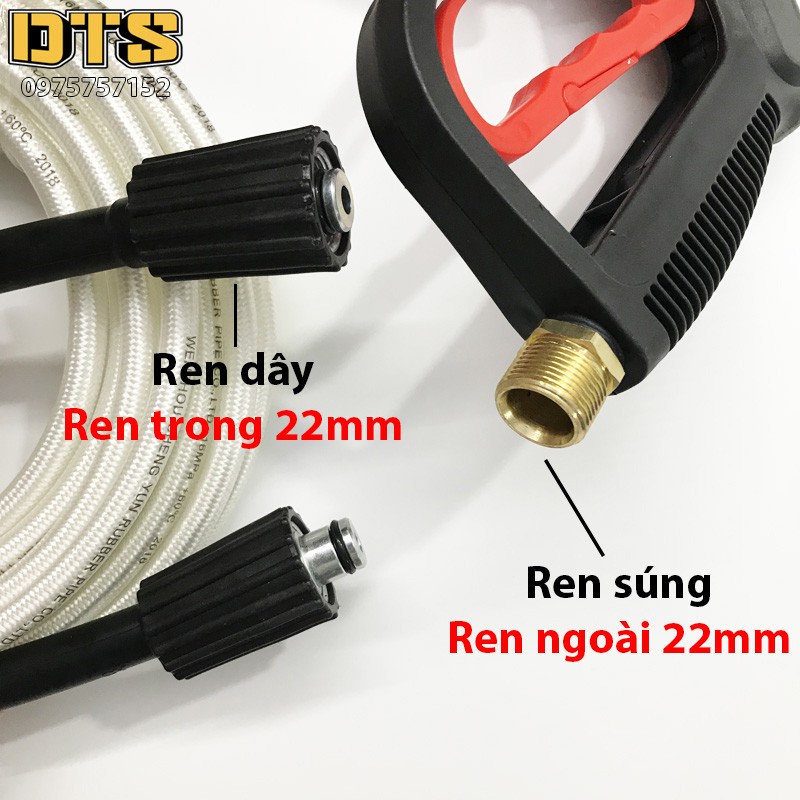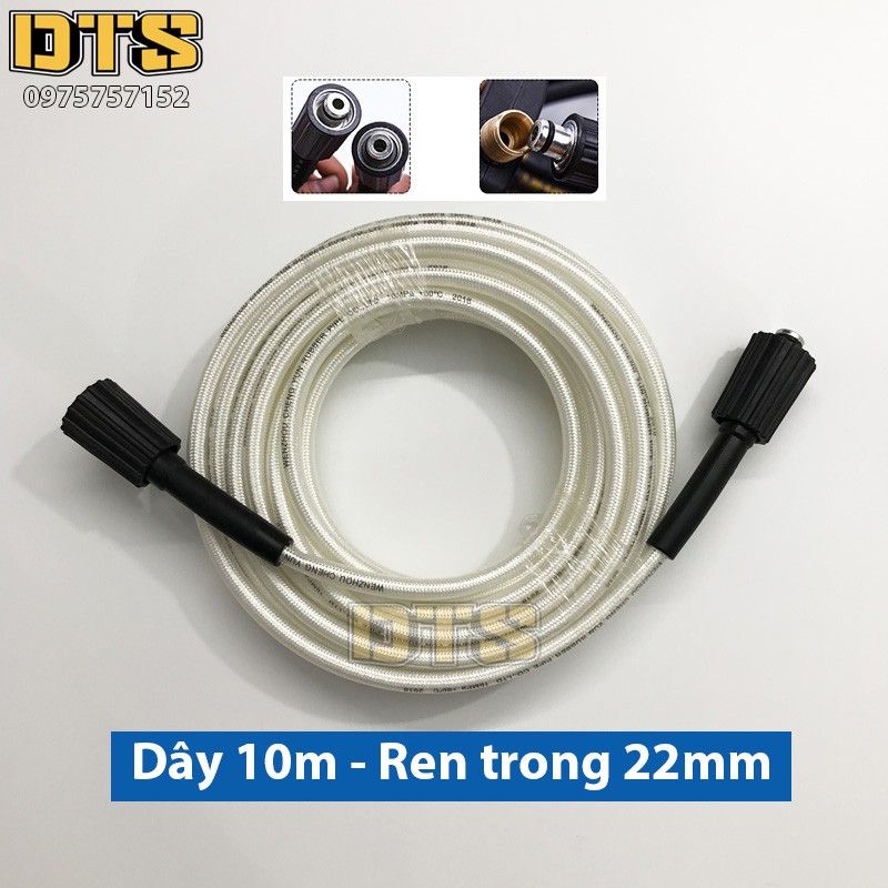 10m Dây rửa xe cao áp cho máy xịt rửa áp lực - Ren trong 22mm