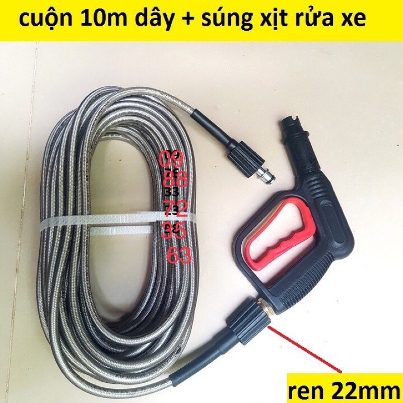 Bộ 10m dây rửa xe và súng xịt - súng rửa xe áp lực cao ren 22