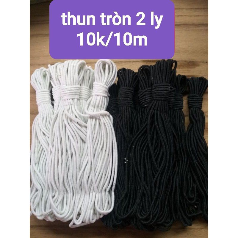 Thun tròn 2ly. tính chất ,làm dây đeo khẩu trang, làm dây khuy nút áo ,vvv..may cho tất cả thể loại quần áo, thun mềm đẹp ko bi đau khi sử dụng , combo 10m thun tròn 2ly, có hai màu đen và trắng ,khách vui lòng chọn màu dùm.Giá ECOREAL