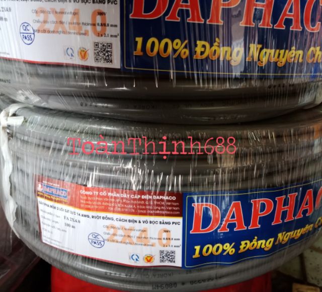 Dây điện đôi 2x4.0 Daphaco (dây pha mềm 2 lõi đồng 2 lớp PVC cách điện rất an toàn )