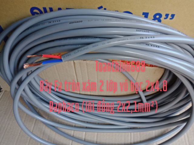 Giới thiệu 10mét Dây điện đôi 2x4.0 Daphaco - dây pha tròn xám 2 lớp vỏ bọc PVC
