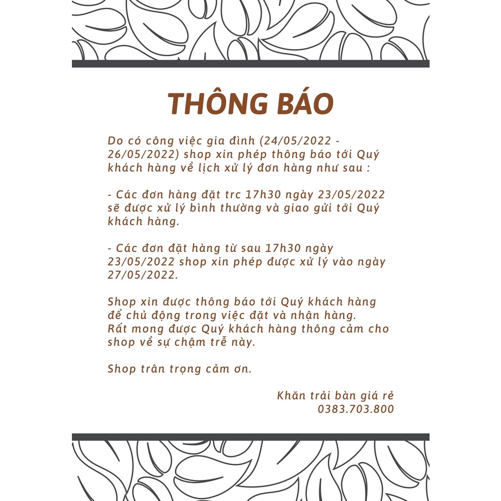 ✔ Để sản phẩm được bền đẹp, tuyệt đối không dùng các chất giặt tẩy mạnh, nên giặt bằng tay để đảm bảo khăn trải bàn luôn đẹp.