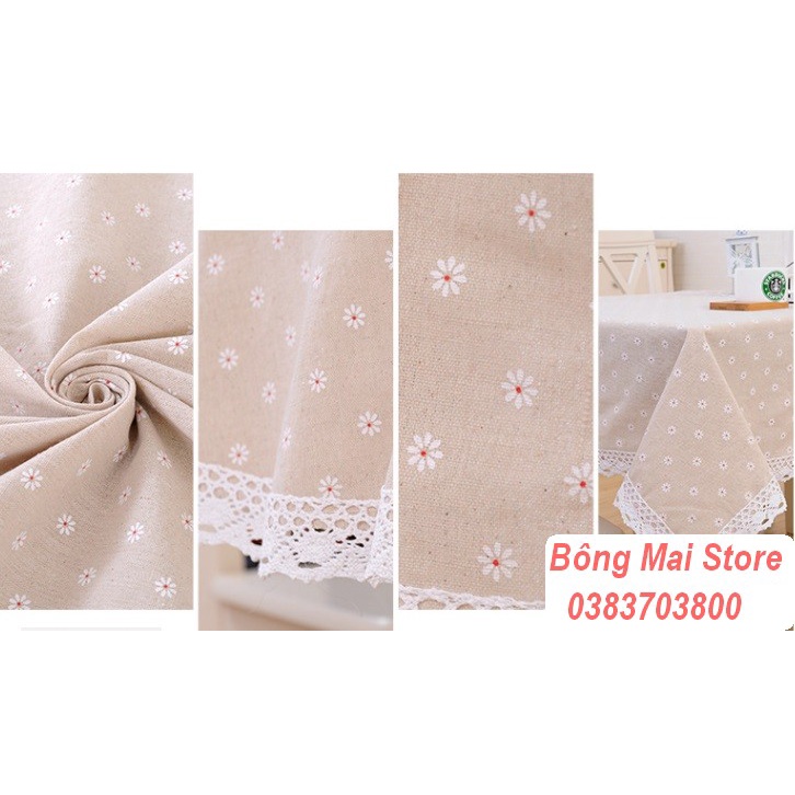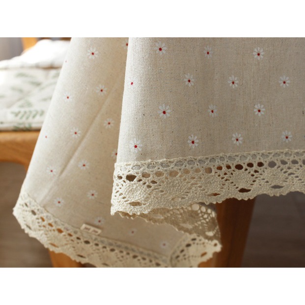 Nhà cửa & Đời sống > Trang trí nhà cửa > Khăn trải bàn || [111*161cm] Khăn trải bàn vải canvas VIỀN REN họa tiết HOA CÚC nhí phong cách Nhật Bản nhẹ nhàng vintage [T001]Còn hàng