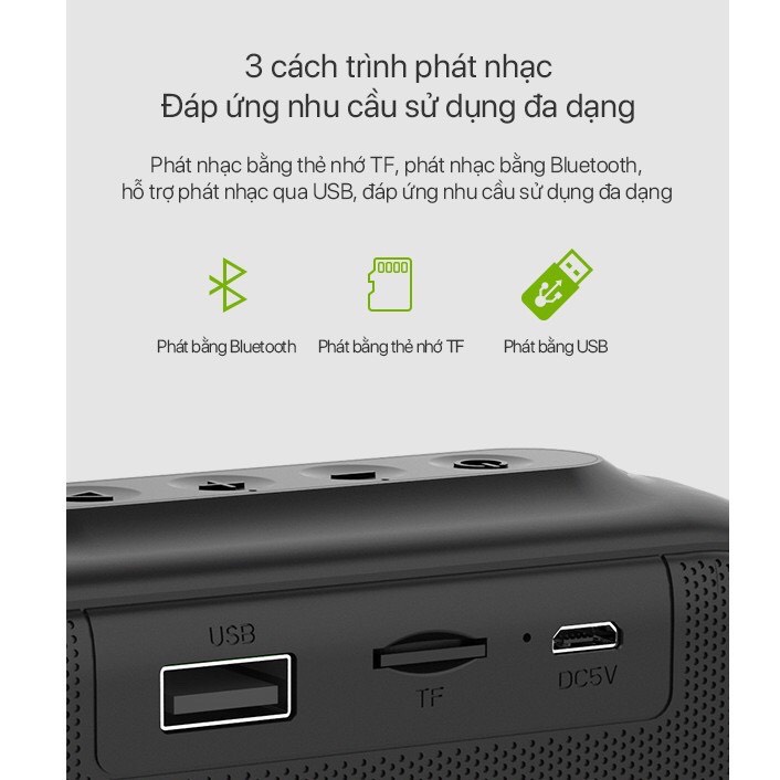 ✔ 3 cách trình phát nhạc, đáp ứng nhu cầu sử dụng đa dạng: phát bằng buetooth, phát bằng thẻ nhớ TF, phát bằng USB
