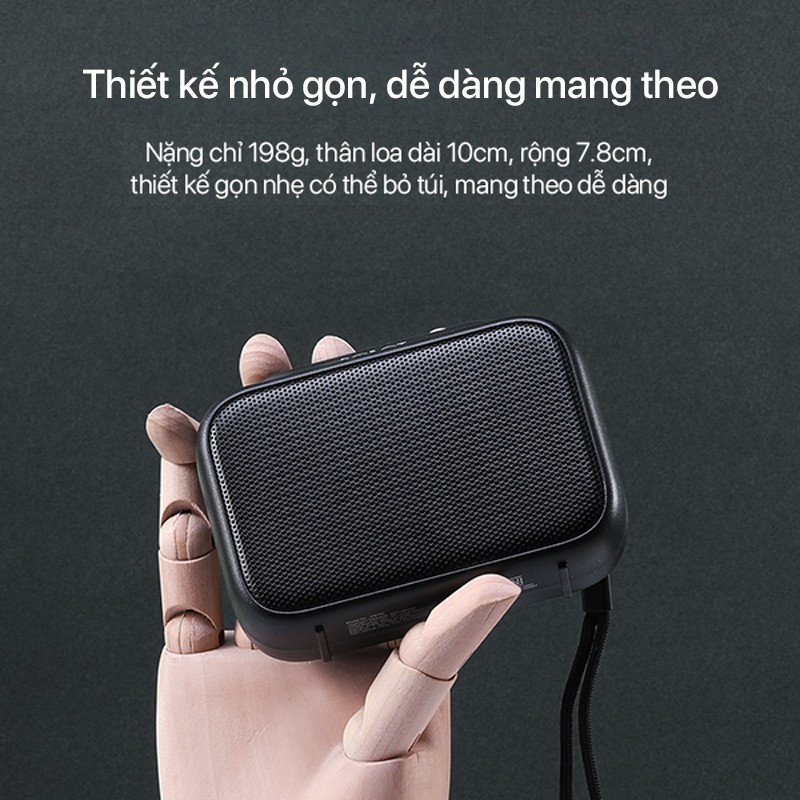 ✔ Thiết kế nhỏ gọn, dễ dàng mang theo. Loa nặng chỉ 200g, thân loa dài 11cm, rộng 7.8cm.