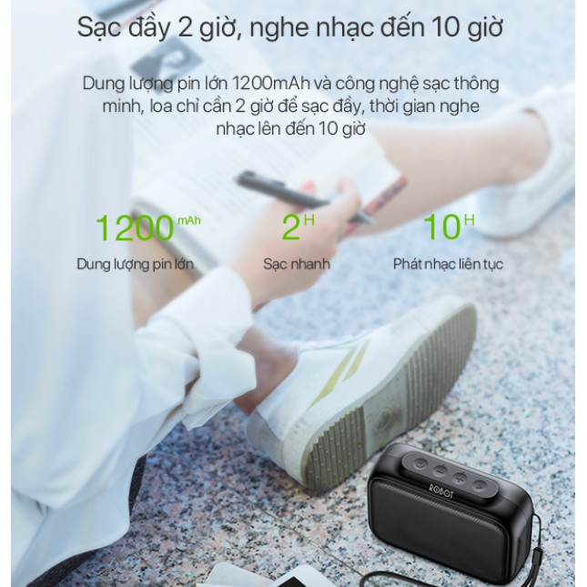 ✔ Dung lượng pin lớn 1200mAh và công nghệ sạc thông minh, loa chỉ cần 3 giờ để sạc đầy nhưng thời gian nghe nhạc lên đến 10 giờ