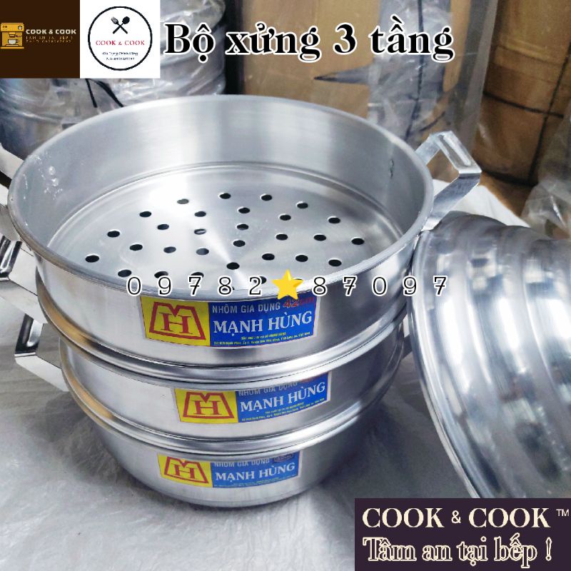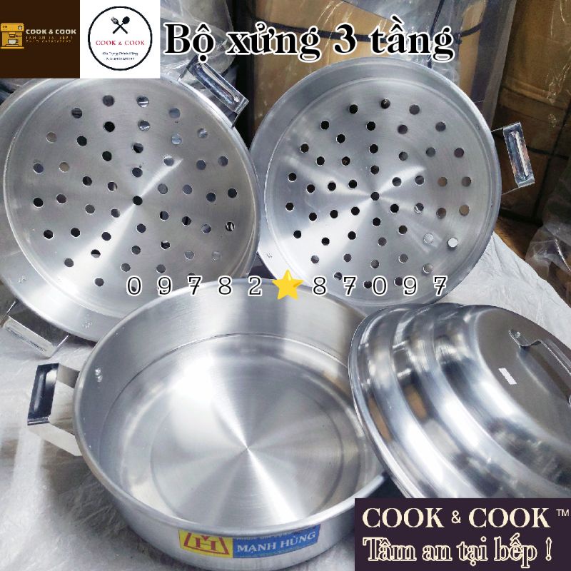 Nhà cửa & Đời sống > Dụng cụ nhà bếp > Nồi || [12.12 Sale] Bộ xửng hấp bánh bao, hấp xôi size 48 cm nhôm Mạnh Hùng 2, 3 tầng hấp xôi, hấp bánh bao, hấp hải sản...Còn hàng