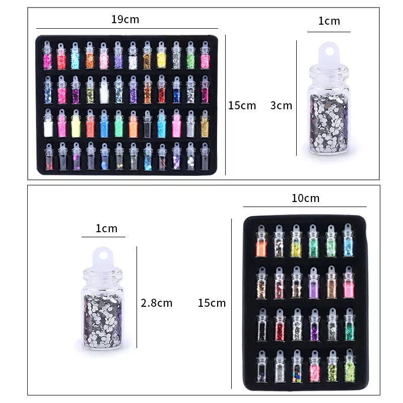 Bộ 12/24/48 Lọ Phụ Kiện Gliter Trang Trí Resin【MÔ TẢ SẢN PHẨM】: