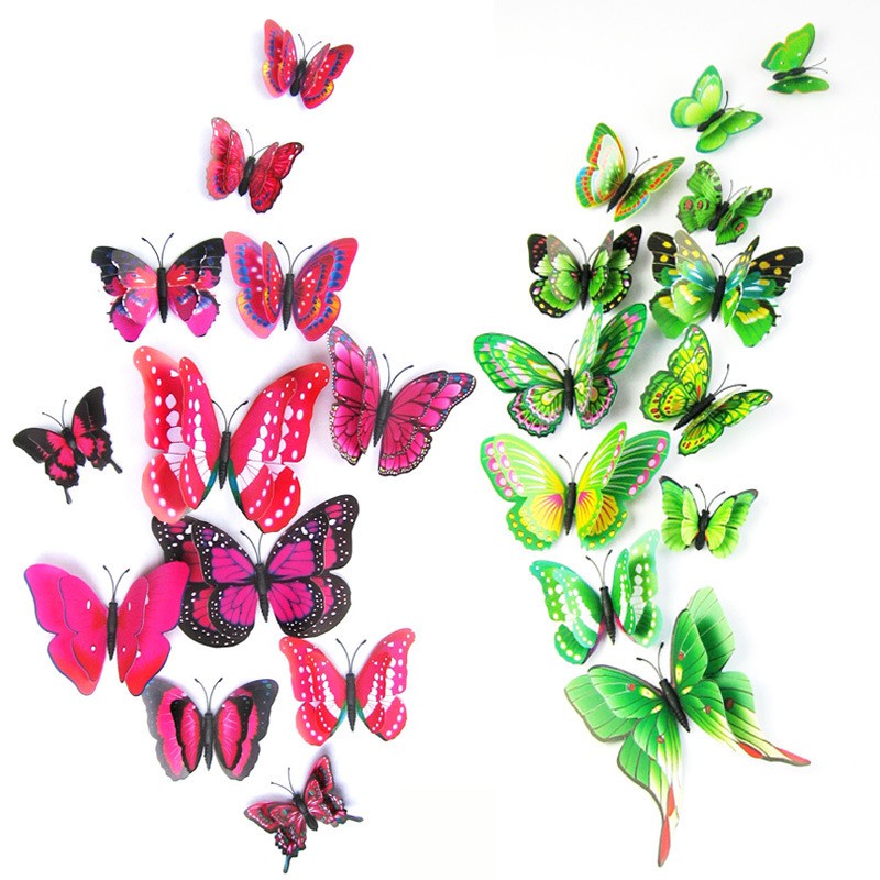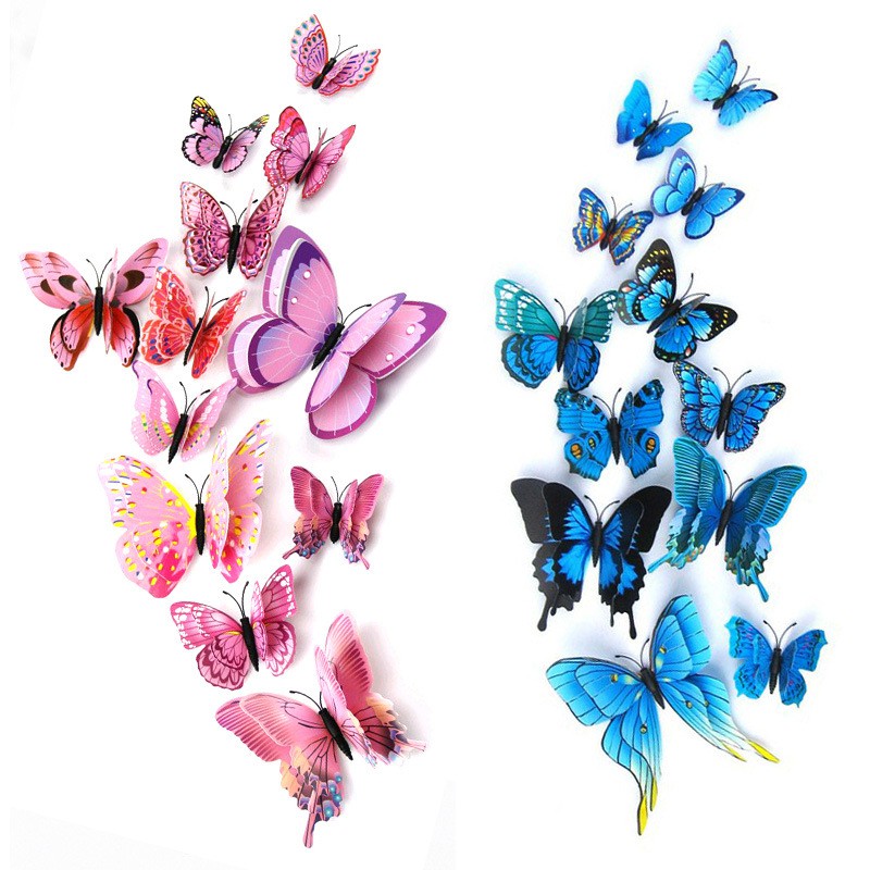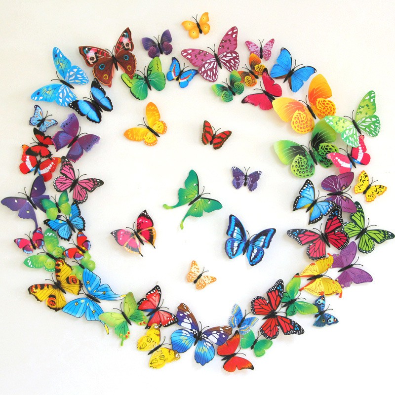 Bộ 12 bướm 3D dán tường, có nam châm gắn tủ lạnh