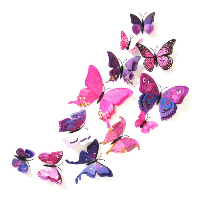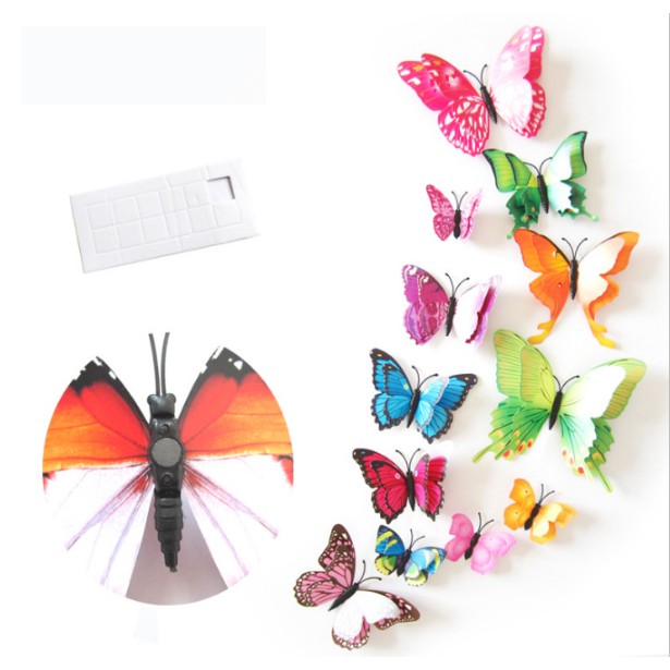 - Combo 12 bướm 2 tầng sắc màu với màu sắc rực rỡ giúp cho căn phòng thêm đẹp mắt và sinh động.- Sản phẩm được làm bằng nhựa cao cấp, có độ bám cao, màu sắc lâu phai.