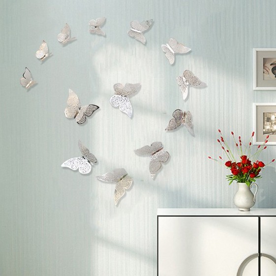 Bộ gồm 12 con bướm và keo dán hai mặtChất liệu: thép cán mỏng
