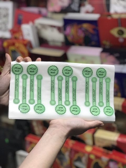 12 cái tem dán Handmade dài màu xanh dùng để dán hộp bánh hoặc túi bánh trung thu