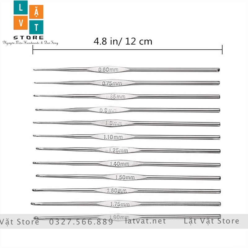 Giới thiệu Bộ 12 cây móc len, móc chỉ, móc ren sợi nhỏ