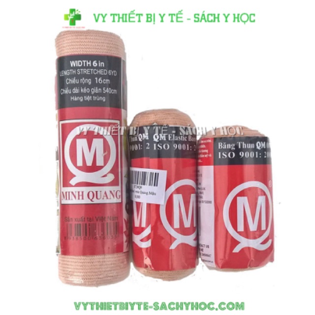 Băng thun y tế Minh Quang được làm từ sợi Cotton se tròn kết hợp với sợi cao su thiên nhiên, được sử dụng trong khoa chấn thương chỉnh hình, phẫu thuật tạo hình thẩm mỹ và băng rốn cho trẻ sơ sinh.Sản phẩm có 2 hãng tuỳ sách ib chọn, và có 2 kích cỡ,