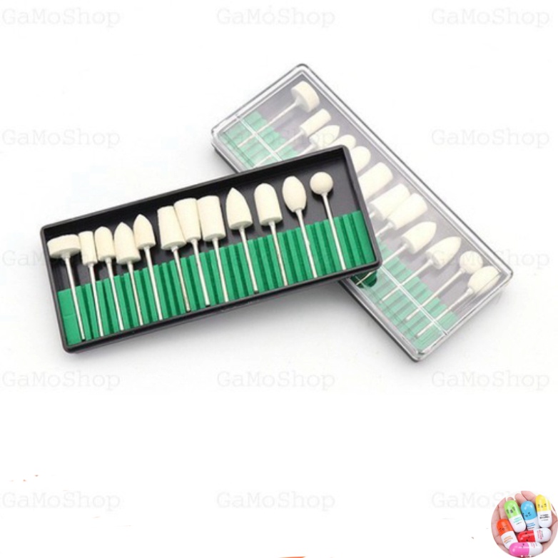 Bộ 12 đầu len cừu đánh bóng dùng cho máy khoan mài mini chân 2,35mm