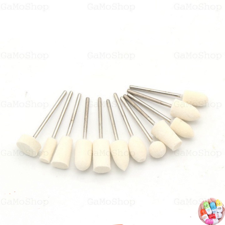 Nhà cửa & Đời sống > Dụng cụ & Thiết bị tiện ích > Dụng cụ > Giấy nhám, máy chà nhám và phụ kiện || Bộ 12 đầu len cừu đánh bóng dùng cho máy khoan mài mini chân 2,35mmCòn hàng
