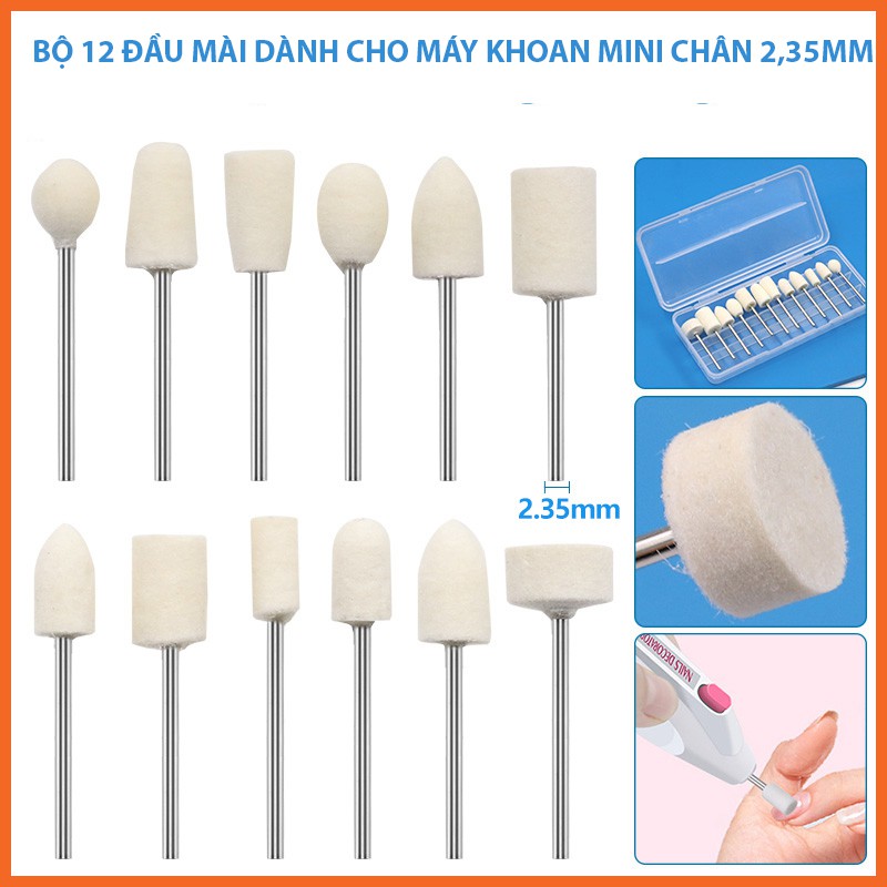 Bộ 12 đầu mài đánh bóng đa năng dùng cho máy khoan mini đầu 2,35mm hàng loại xịn