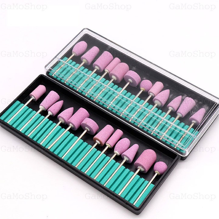 Bộ 12 đầu đá mài các kiểu dùng cho máy khoan mài mini chân 2,35mm.Dùng được cho tất cả các loại máy khoan mài cắt mini đa năng hiện có trên thị trường.