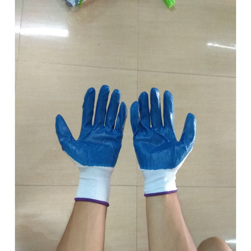 12 đôi găng tay phủ sơn xanh ( 1 túi )