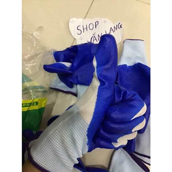 Nhà cửa & Đời sống > Dụng cụ & Thiết bị tiện ích > Găng tay, kính bảo hộ & mặt nạ || 12 Đôi gang tay sơn xanh bảo hộ lao động siêu bền - Hàng đẹpCòn hàng