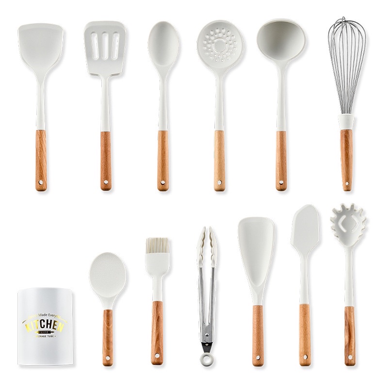 🌿🌿 Bộ dụng cụ nấu ăn, làm bếp, làm bánh silicon màu trắng KITCHEN chính hãngBộ Dụng Cụ Nấu Ăn Silicone Kitchen 12 Món Đa Năng, Có Nhiều Màu Bắt Mắt