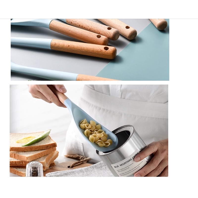 Nhà cửa & Đời sống > Dụng cụ nhà bếp > Cây vét bột & đồ gắp thức ăn || Bộ 12 dụng cụ nấu ăn, làm bánh silicon màu xanh KITCHEN chính hãngCòn hàng