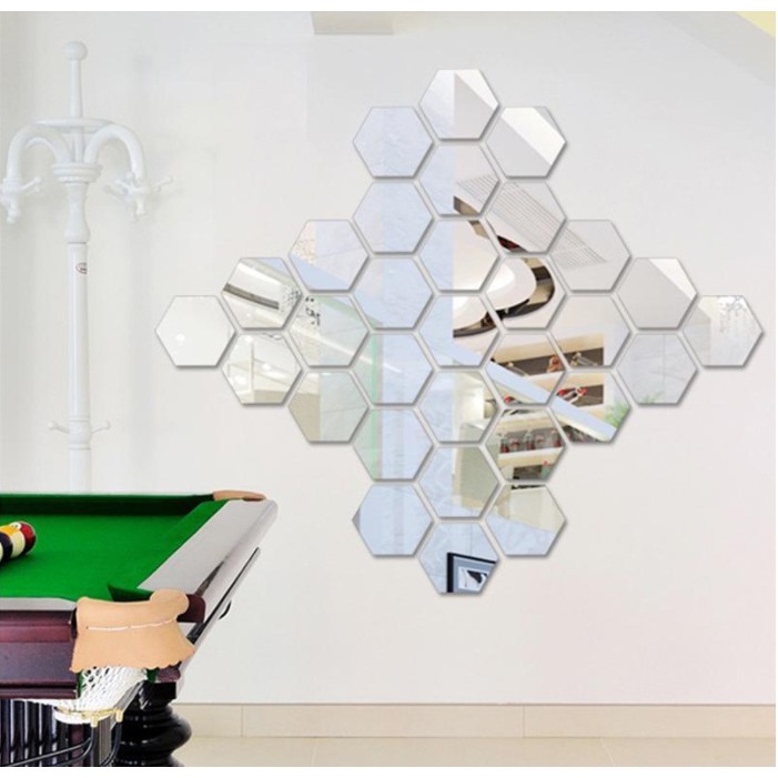 Giới thiệu Bộ 12 gương dán tường lục giác trang trí 4x4 cm