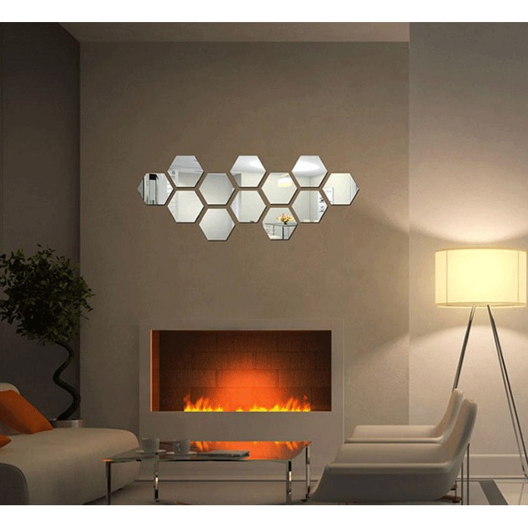 Bộ 12 gương dán tường lục giác trang trí 4x4 cm