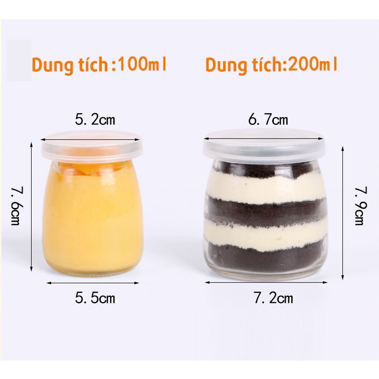 Bộ 12 Hũ Thủy Tinh Làm Sữa Chua Có Nắp Dung Tích 100 ml và 200 ml