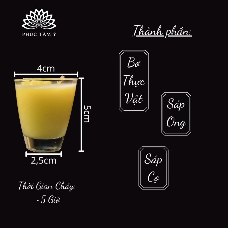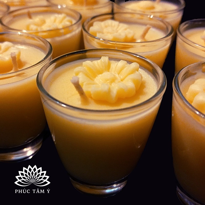 Phúc Tâm Ý chuyên sản xuất các sản phẩm về nến từ Bơ Thực Vật, Sáp Ong, Sáp Cọ, Sáp Đậu Nành (nguyên liệu tự nhiên, an toàn cho sức khỏe): Nến tealight, nến ly thờ cúng, nến thơm tinh dầu,...