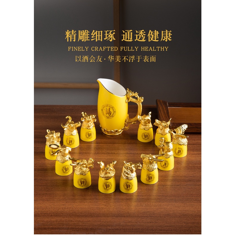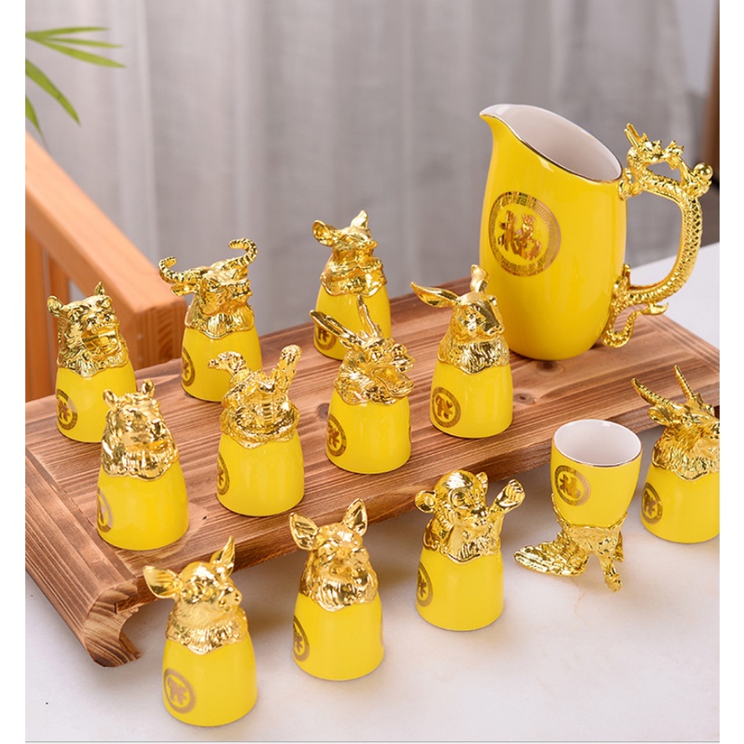 Bộ 12 ly rượu hình 12 con giápBộ ly 12 con giáp, bộ ly 12 con giáp mạ vàng