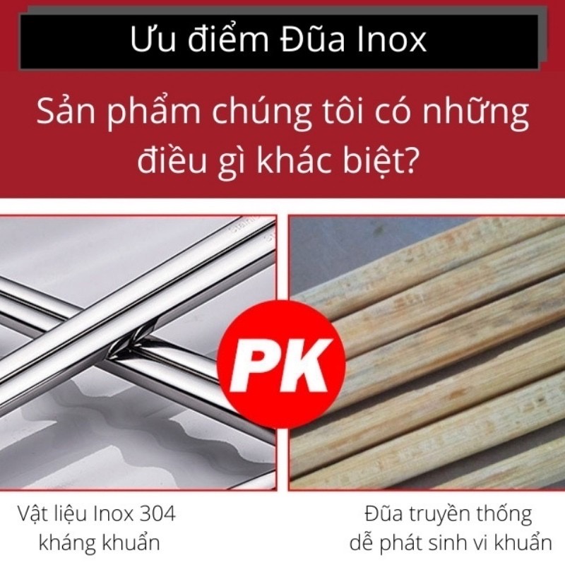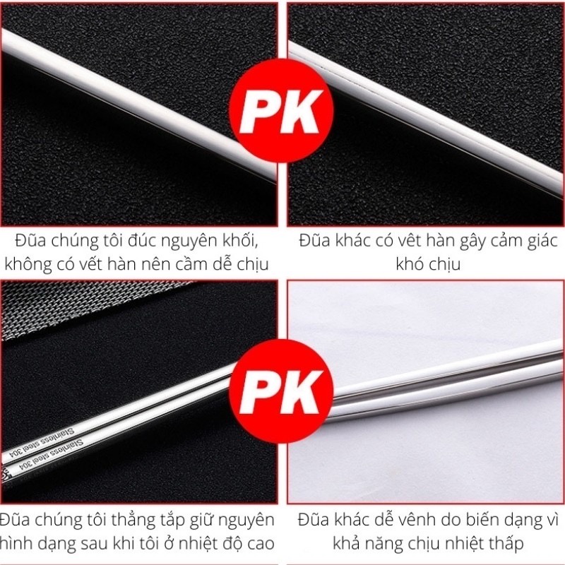 • Chất liệu đũa Inox 304 an toàn với sức khỏe người sử dụng.