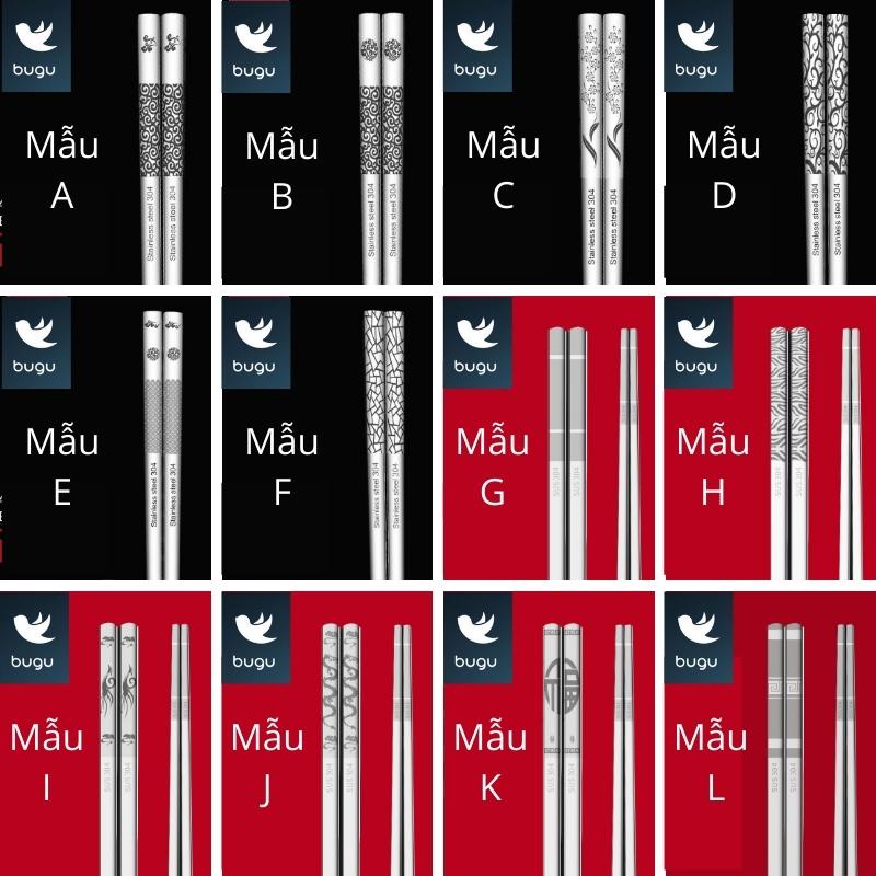 Tên sản phẩm: 12 Mẫu Đũa Inox 304 Kháng Khuẩn Không Trơn Trượt Hoa Văn Tinh Tế BUGU SK-P02
