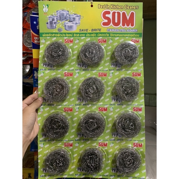 Cước Chùi Xoong thương hiệu SumBùi nhùi cọ xoong nồi đánh bay cả những vết bẩn bám trên xoong nồi khó cọ nhất ạ.Sản phẩm được các mẹ nội trợ tin dùng ạ🔺🔵🔵🔵
