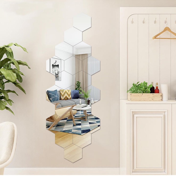 Nhà cửa & Đời sống > Trang trí nhà cửa > Gương || Bộ 12 miếng gương dán tường 3D hình lục giác 11x11 cmCòn hàng