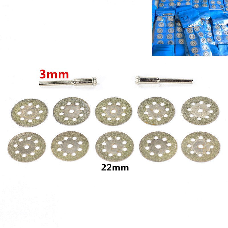Bộ 10 đĩa cắt thép carbon cho máy đa năng 22mmĐĩa cắt được làm bằng thép carbon, bề mặt được tráng phủ kim cương nên rất bền và cứng.