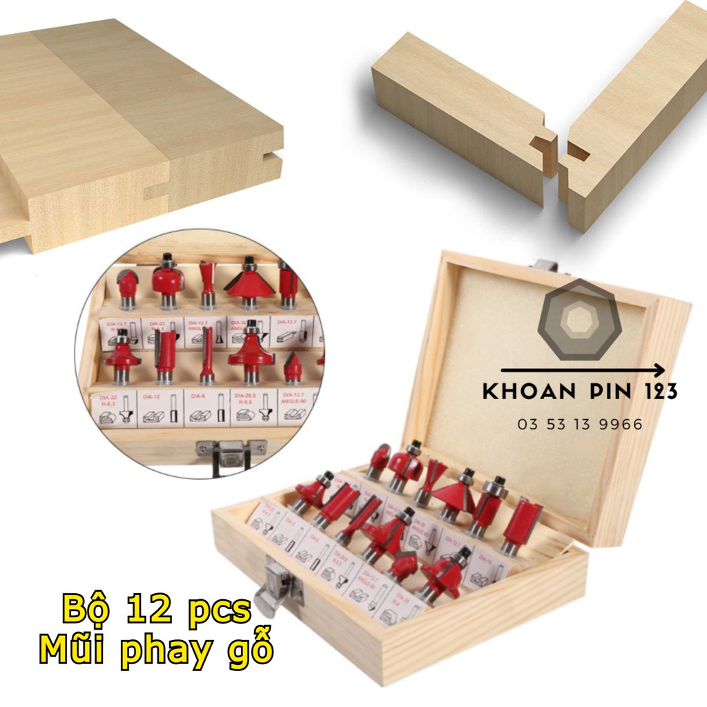 - Bộ mũi phay gỗ 12 món chuyên dùng cho máy phay cầm tay hoặc máy bàn router