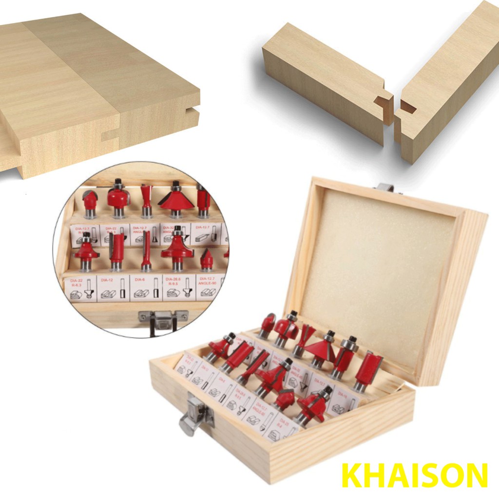 - Bộ mũi phay gỗ 12 món chuyên dùng cho máy phay cầm tay hoặc máy bàn router