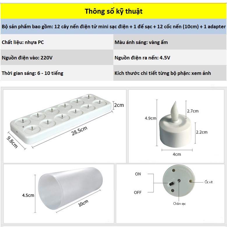 Giới thiệu Bộ 12 nến điện tử mini sạc điện CE12