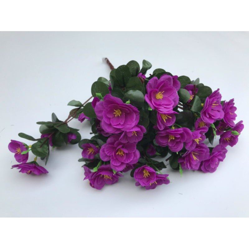Chats liệu cành lá làm nhựa tái chế được hoa làm vải lụaCành lớn gồm 12 nhánh, mỗi nhánh gồm 3 chùm nhỏ nên cành rất lơnd