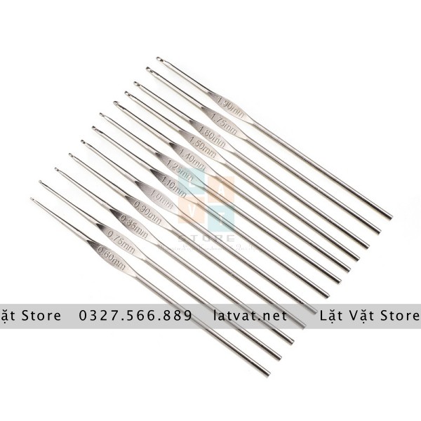 Sở thích & Sưu tầm > Dụng Cụ May Vá || 12 size Móc len sắt màu trắng, chuyên dùng để móc ren, sợi chỉ lựa chọn từ 0,6 đến 1,9 mm - Crochet HookCòn hàng