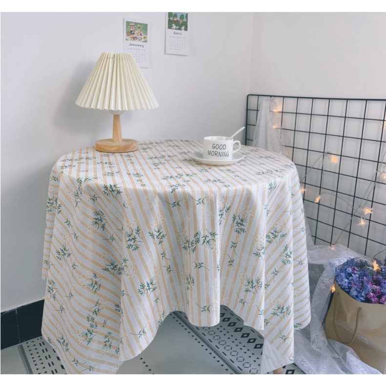 Nhà cửa & Đời sống > Trang trí nhà cửa > Khăn trải bàn || [120*120cm] Khăn trải bàn vải flannel không thấm nước hoa tử đinh hương kẻ sọc phong cách nhẹ nhàng vintage - T063Còn hàng