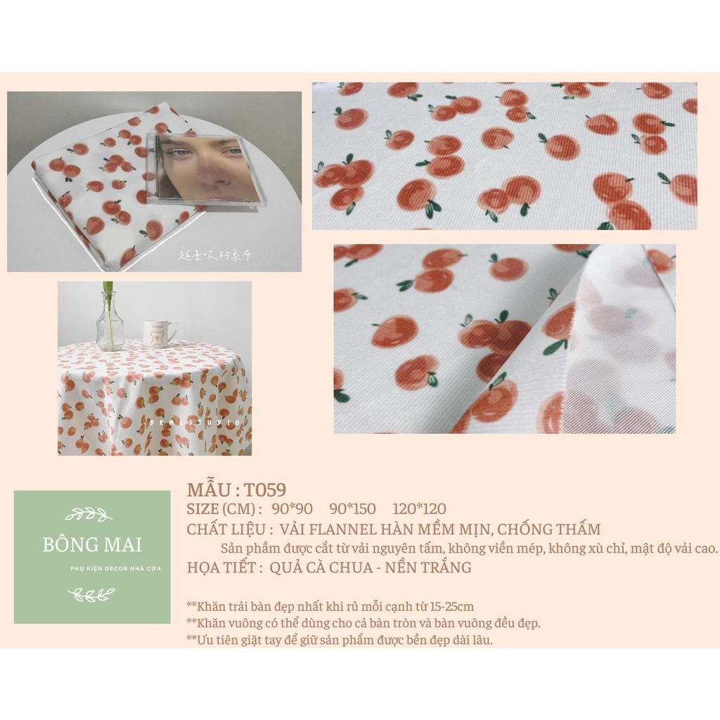 Khăn trải bàn vải flannel không thấm nước họa tiết cà chua phong cách nhẹ nhàng vintage - T059Khăn được sử dụng với nhiều công dụng : khăn trải bàn trà, trải bàn làm việc, trải sofa decor phòng, thảm picnic, phụ kiện chụp ảnh.