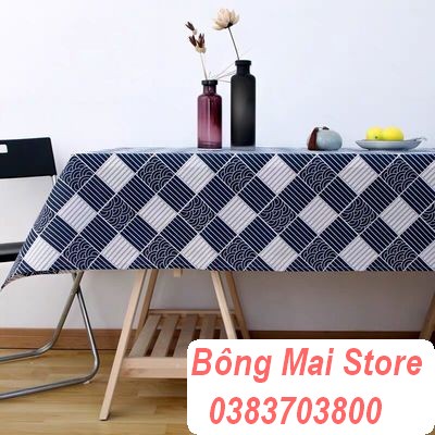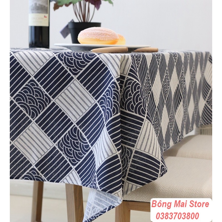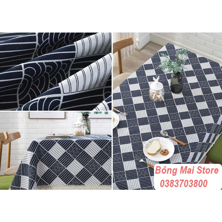 Nhà cửa & Đời sống > Trang trí nhà cửa > Khăn trải bàn || [120*170cm] Khăn trải bàn vải canvas có viền mép họa tiết kẻ chéo phong cách vintage [T014]Còn hàng
