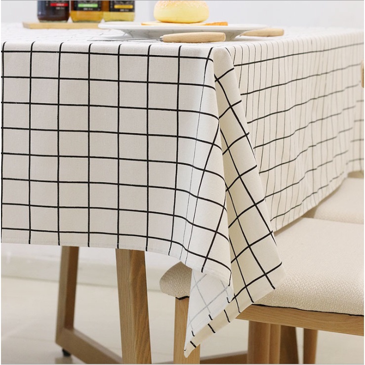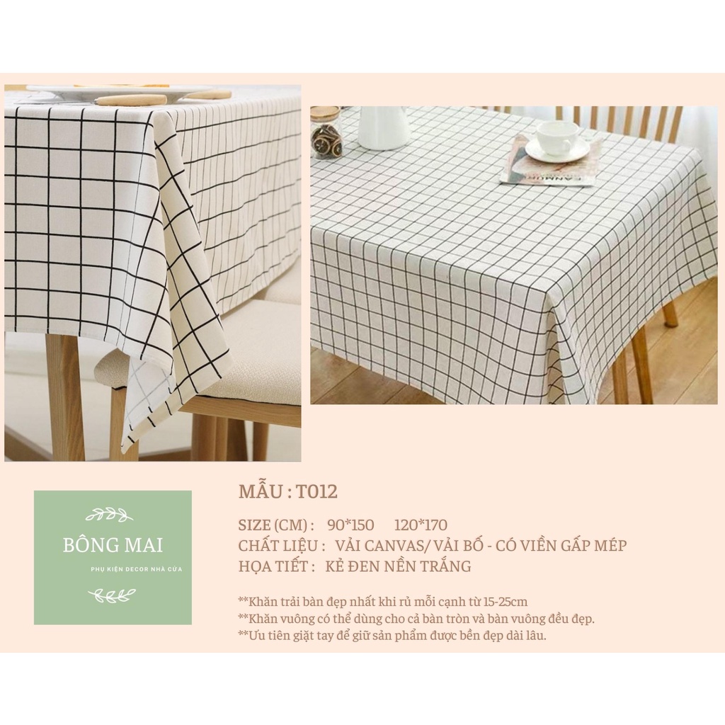 Nhà cửa & Đời sống > Trang trí nhà cửa > Khăn trải bàn || [120*170cm] Khăn trải bàn vải canvas có viền mép họa tiết kẻ phong cách vintage [T012]Còn hàng