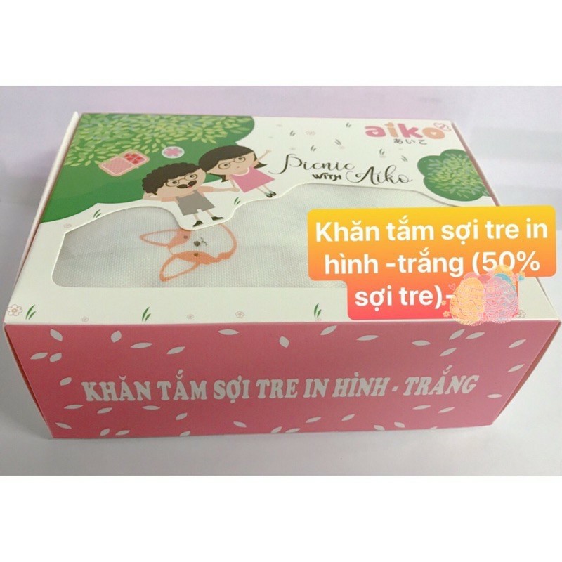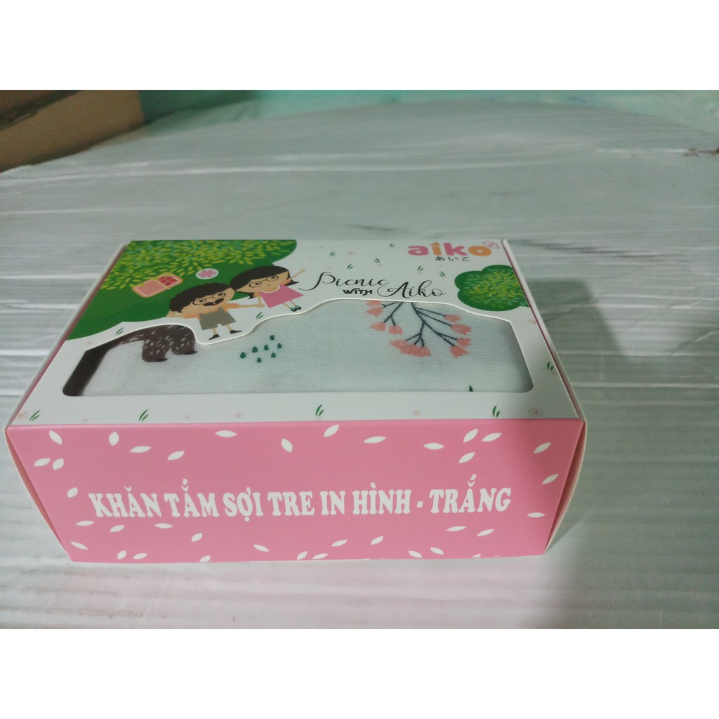 Giới thiệu (120x110cm) Khăn tắm sợi tre in hình - màu trắng (50% tre)