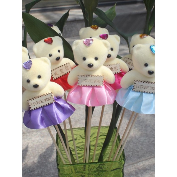 Chất liệu gấu nhồi bông loại nhỏ kích thước gấu cao 12cmThích hợp cắm hoa .bó hoa trang trí....