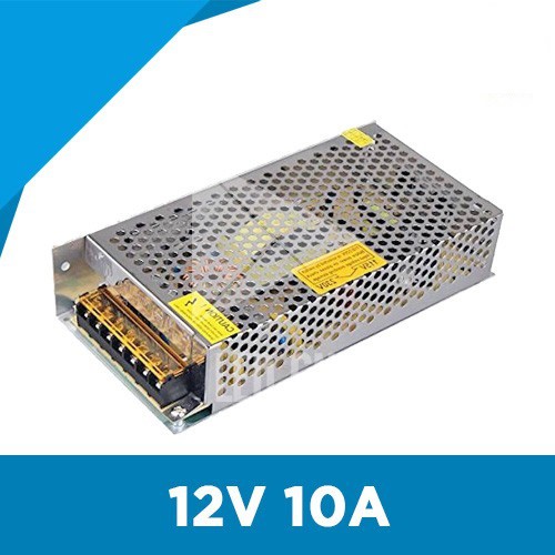 Nguồn 12V 10A là bộ chuyển đổi nguồn từ 220V AC về điện áp 12V 10A DC – loại nguồn thông dụng thường được sử dụng cho các loại LED như LED Hắt, LED Dây Dán, LED Trang Trí.. hay Camera.
