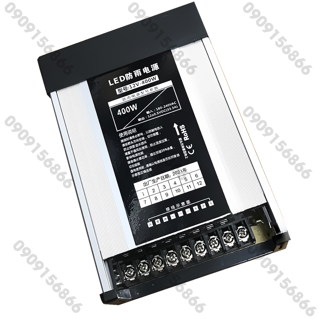 Nguồn 12v 33a dùng để cấp điện cho led, các đồ dùng có điện áp 12vThiết kế lịch sự, bền bỉ, để ngoài trời, chịu được nắng mưa